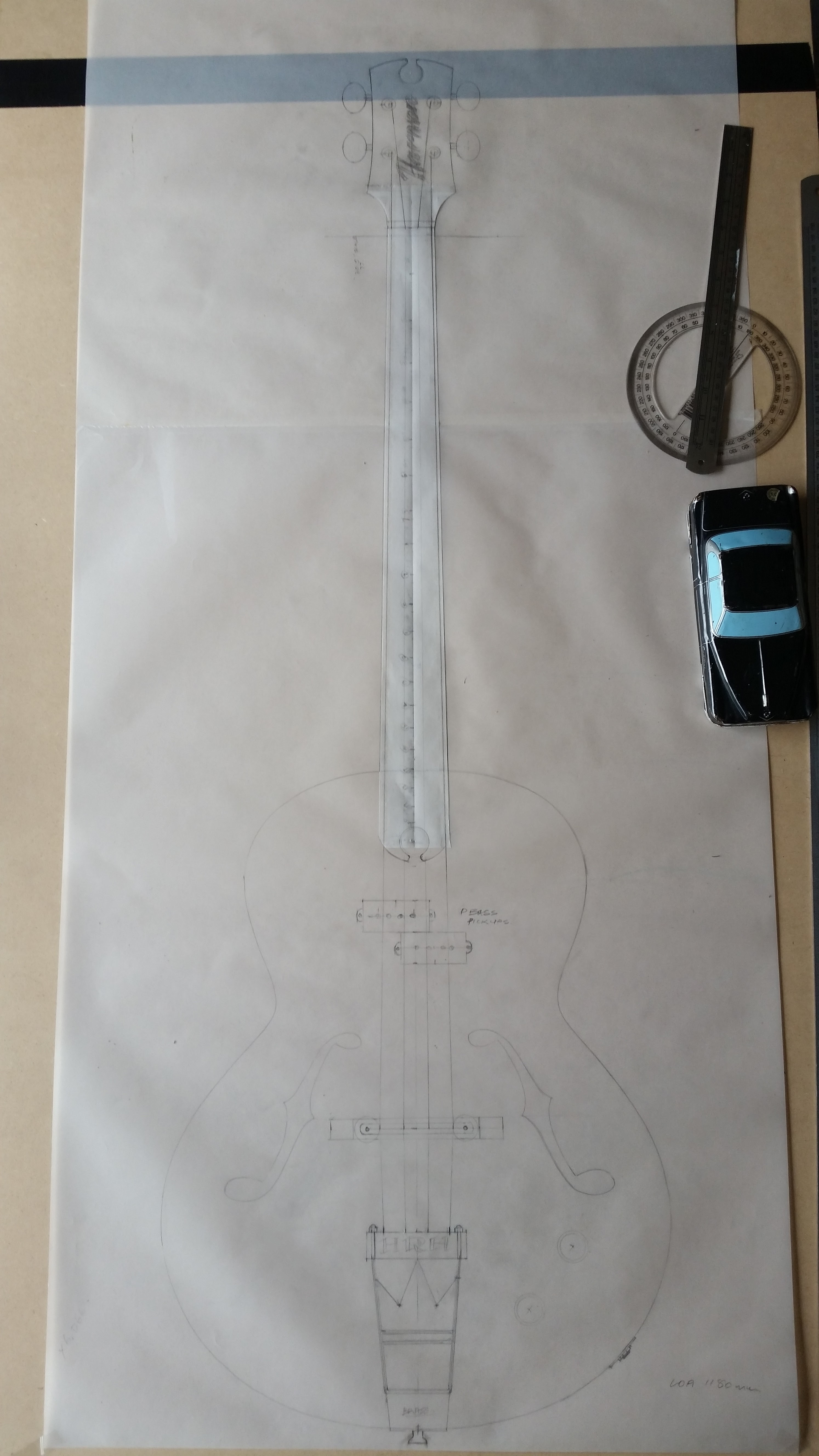 This side view gave me an opportunity to decide on the neck And string break angle angle over the saddle.